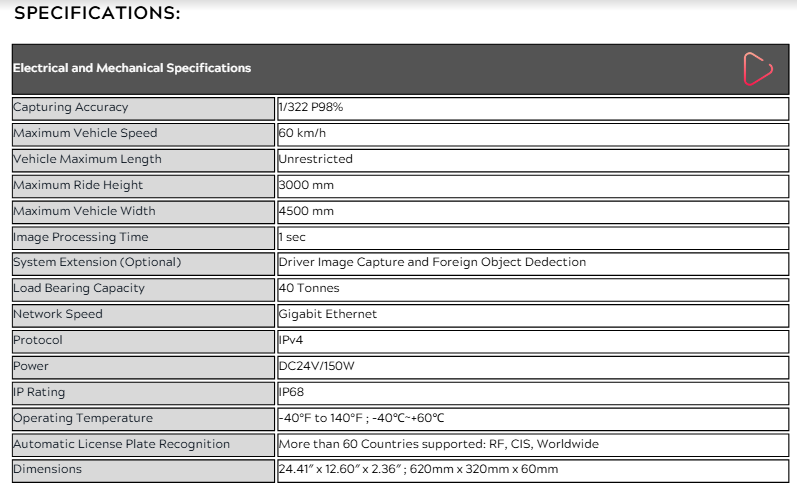 - Vehicle Speed Capture: Effective at vehicle speeds up to 60 km/h.